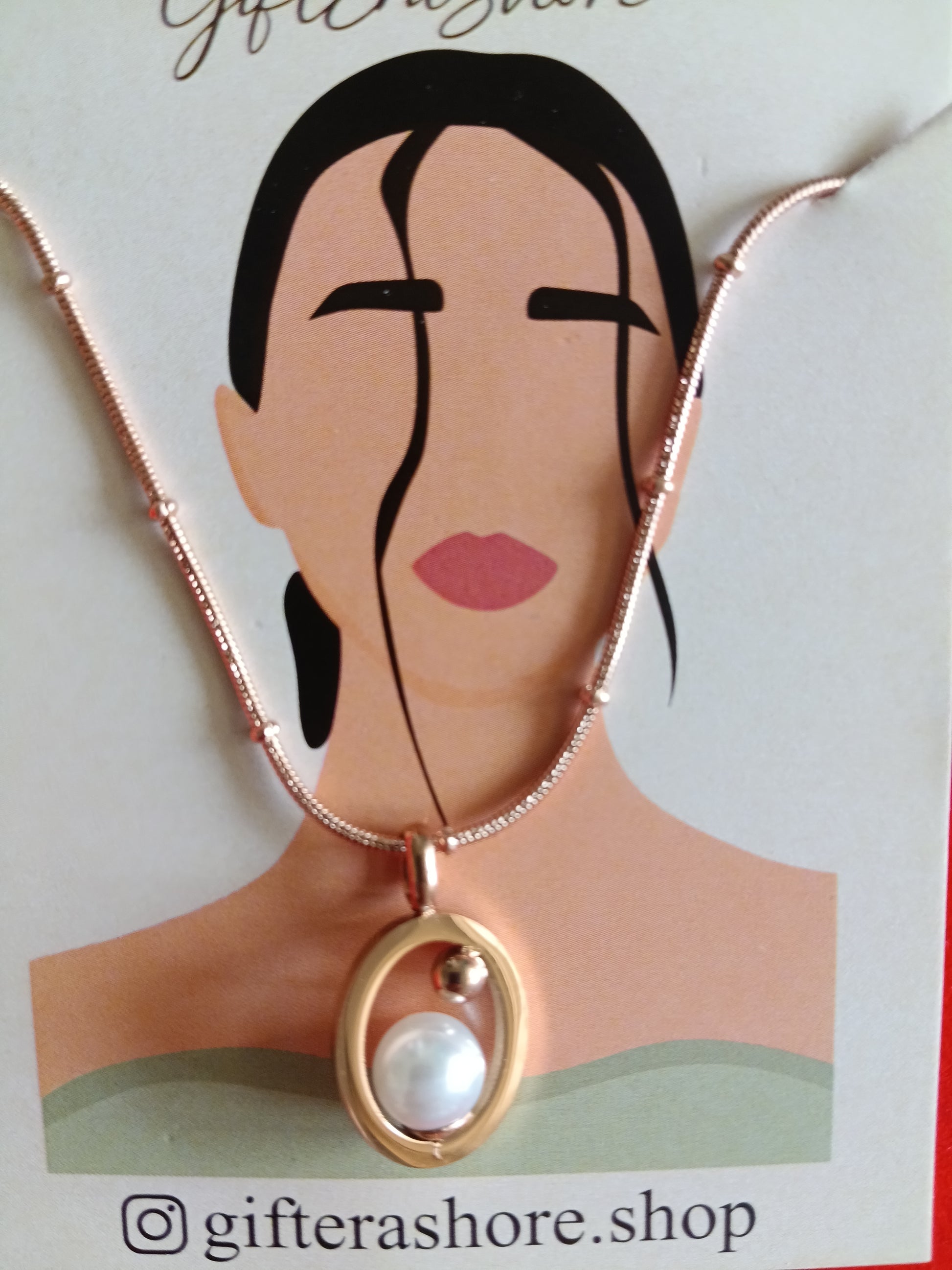 Rose Gold Floating Pearl Oval Necklace